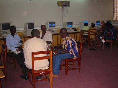 8:30 - meeting with principal Joe Mensa-Eshun. He explained about how KTI works. They offer 14 industry programs including refergeration, auto mechanics etc. A group of students came in. We find they all know the basic Microsoft Office programs. But not much beyond that. Mr. Mensa-Eshun suggested we divide into hardware and software classes. Salihou taught hardware and I, software.